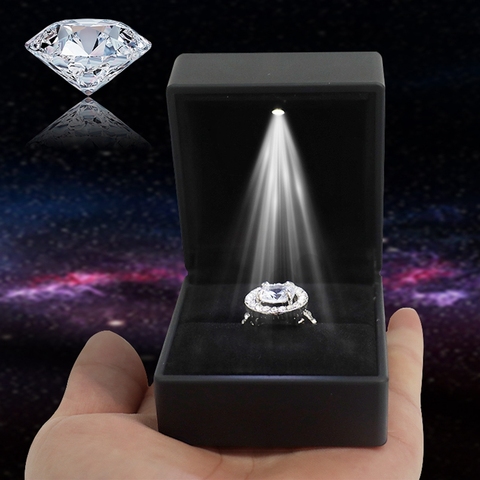 Caja de joyería Led Logotipo de laca negra Estampado de oro Paquete de joyería Led de lujo Anillo personalizado Caja de joyería de diamante con luces